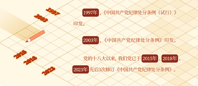 2023年12月,中共中央印發(fā)了修訂后的《中國(guó)共產(chǎn)黨紀(jì)律處分條例》,這是黨的十八大以來,我們黨第3次修訂《中國(guó)共產(chǎn)黨紀(jì)律處分條例》。下面,我們一起回顧《條例》如何與時(shí)俱進(jìn),不斷修訂完善。