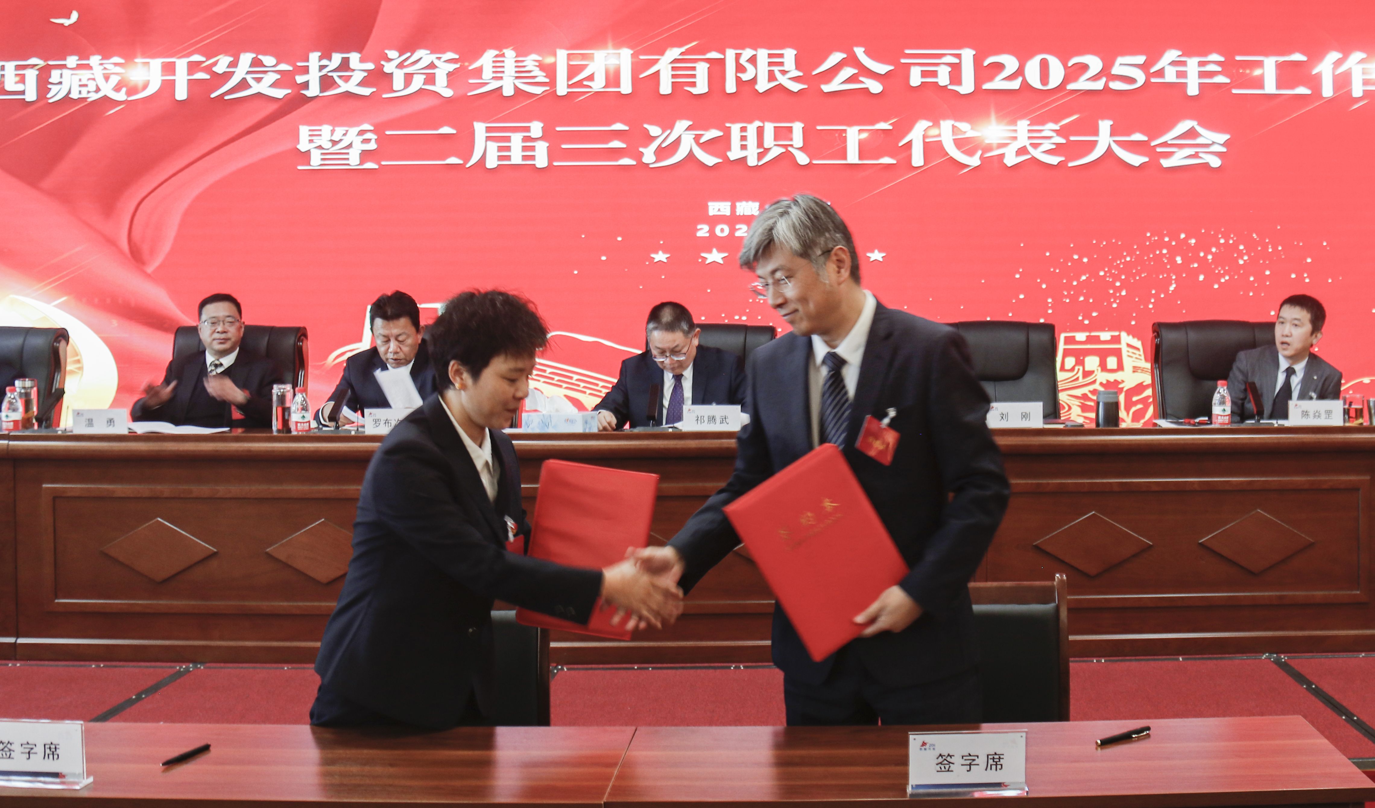 會上,集團(tuán)管理方首席代表劉剛與集團(tuán)職工方首席代表羅布次仁簽訂了《集體合同》及附屬專項(xiàng)集體合同。并代表集團(tuán)與各部門、各單位代表簽訂了今年的目標(biāo)責(zé)任書。