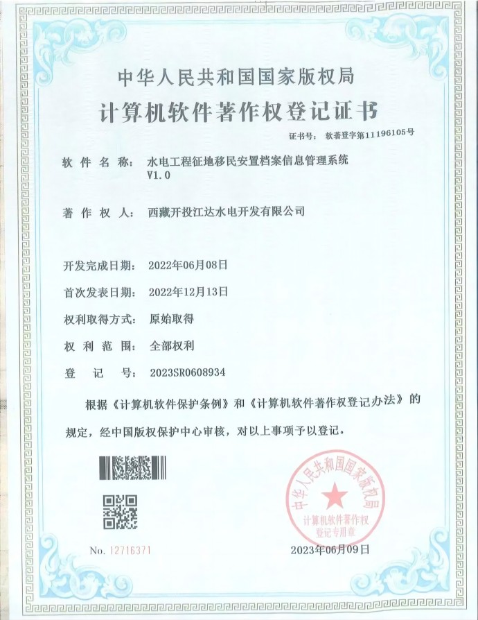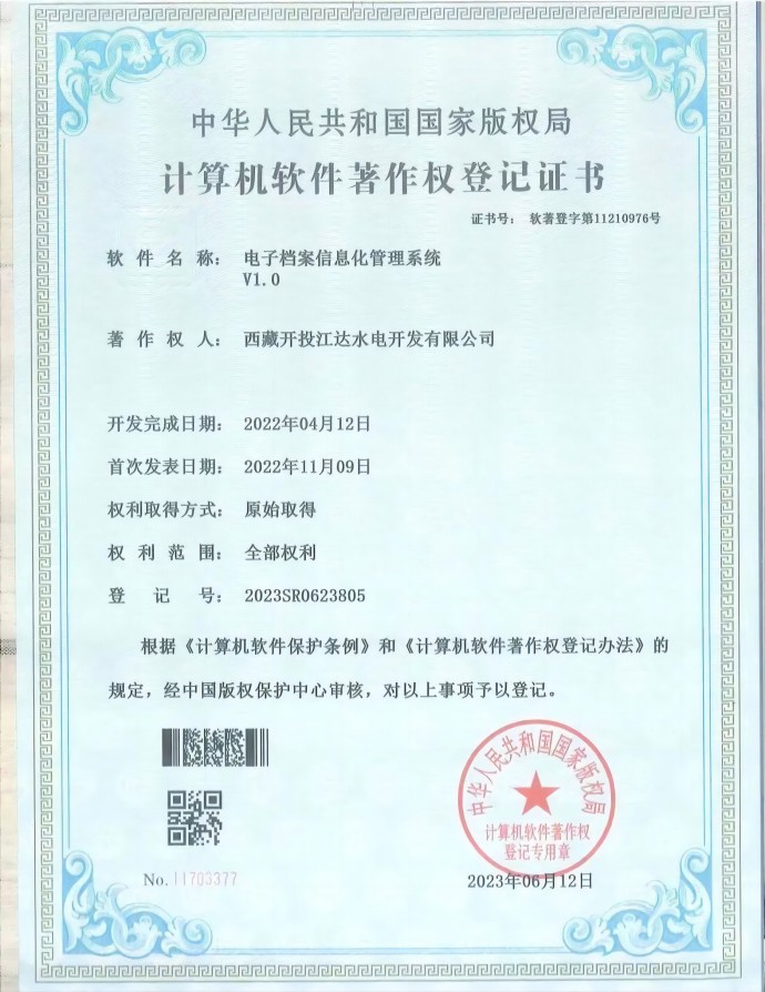近日,經(jīng)中國(guó)版權(quán)保護(hù)中心審核,集團(tuán)公司所屬項(xiàng)目公司申報(bào)的三項(xiàng)軟件著作權(quán)符合《計(jì)算機(jī)軟件保護(hù)條例》和《計(jì)算機(jī)軟件著作權(quán)登記辦法》的相關(guān)規(guī)定,被正式授予計(jì)算機(jī)軟件著作權(quán)登記證書(shū)。本次取得證書(shū)的3項(xiàng)軟件分別是“安全生產(chǎn)信息系統(tǒng)管理平臺(tái)V1.0”“電子檔案信息化管理系統(tǒng)V1.0”“水電工程征地移民安置檔案信息管理系統(tǒng)V1.0”。