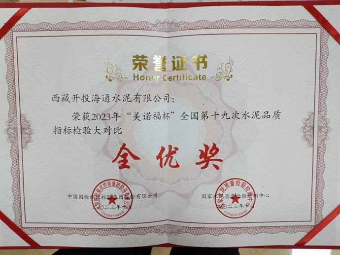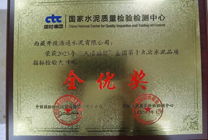 近期,西藏開投海通水泥有限公司獲得“美諾福杯”全國(guó)第十九次水泥品質(zhì)指標(biāo)檢驗(yàn)大對(duì)“全優(yōu)獎(jiǎng)”。