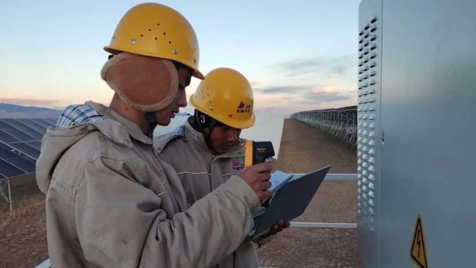 為了電站的安全穩(wěn)定運行,改則光儲電站運維人員每天必須要做的就是開展設(shè)備巡檢,從中控室出發(fā)前往高壓開關(guān)室、升壓站、光伏區(qū)、生活區(qū)等關(guān)鍵位置,對變壓器、SVG、逆變器、儲能箱變、光伏板等設(shè)備依次進行全方位排查。“冬季電站運維面臨的最大挑戰(zhàn)就是大風(fēng),改則光儲電站地勢較高,冬天幾乎每天都是大風(fēng)天氣,有時候風(fēng)吹得人都站不穩(wěn),刮得人臉上生疼。越是這種天氣越要認真排查有沒有光伏板被風(fēng)吹掉了、設(shè)備運行是否正常、組件螺栓有沒有松動……生活上的一些用電等隱患也要仔細排查。如果發(fā)現(xiàn)問題,我們第一時間記錄并處理。”西藏開投電力工程公司副總經(jīng)理孫繼東說。