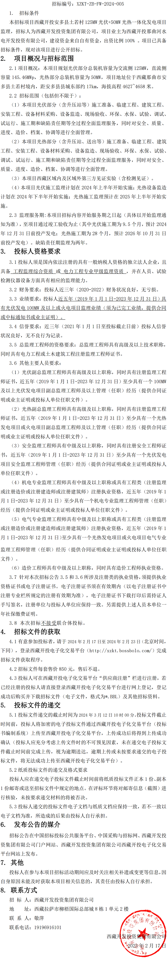一體化發(fā)電項目監(jiān)理招標公告