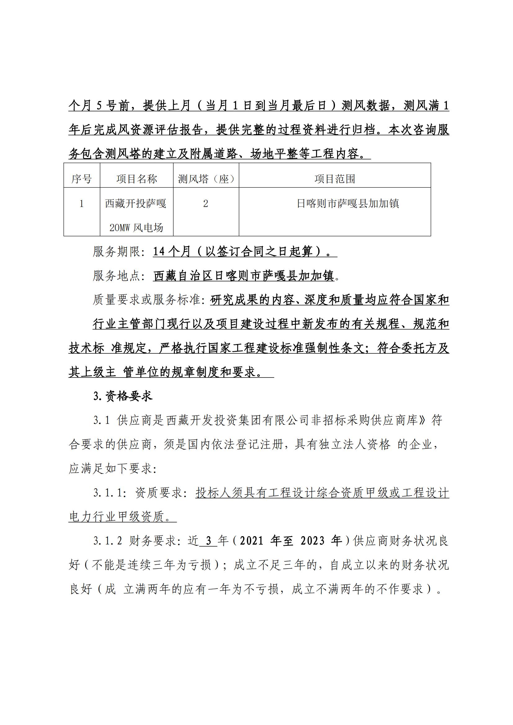 西藏開(kāi)投薩嘎20ML風(fēng)電項(xiàng)目測(cè)風(fēng)技術(shù)服務(wù)詢價(jià)采購(gòu)公告(第二次)