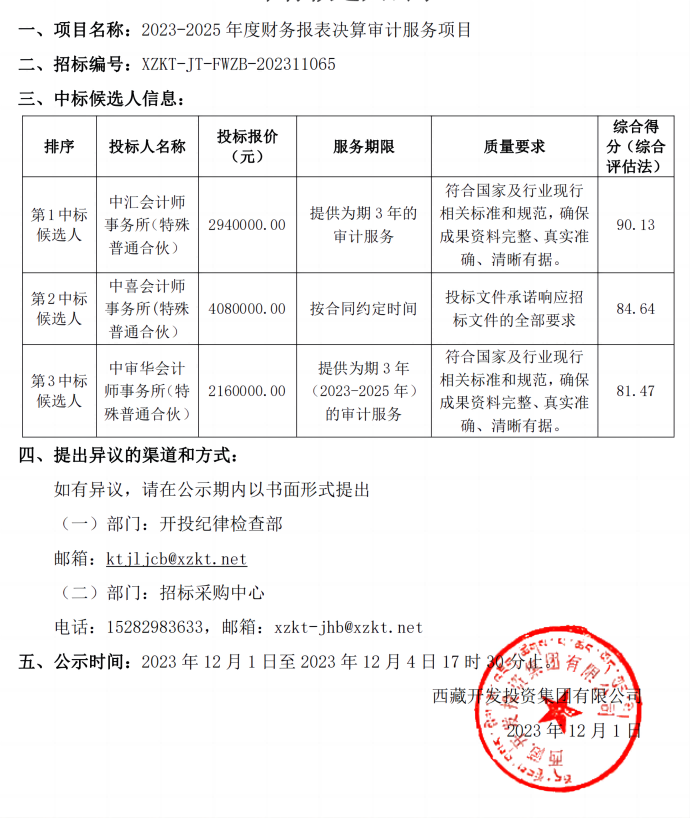 中標候選人公示